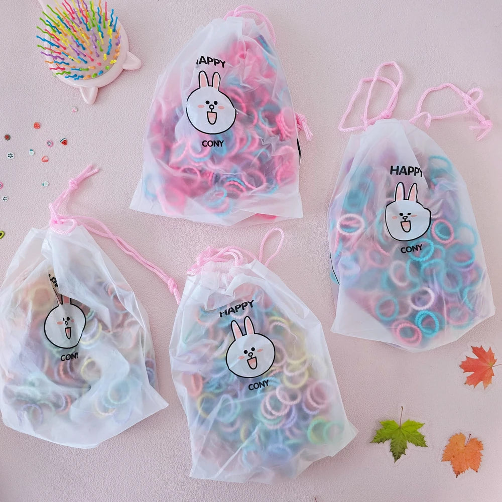 Descubrí la diversión en cada detalle con esta bolsa de 300 mini colitas "Happy Cony" en suaves colores pasteles. Con un tamaño práctico de 15 cm de largo por 20 cm de alto, son perfectas para darle un toque alegre y colorido a cualquier peinado. Elegí entre cuatro modelos diferentes y disfrutá de la variedad para combinar con tu estilo. ¡Ideal para grandes y chicos que quieren sumar un toque divertido y coqueto!