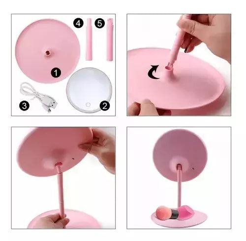 Su forma redonda refleja toda la cara y el cuello al mismo tiempo, facilitando la aplicación completa del maquillaje en comparación con los espejos circulares tradicionales.