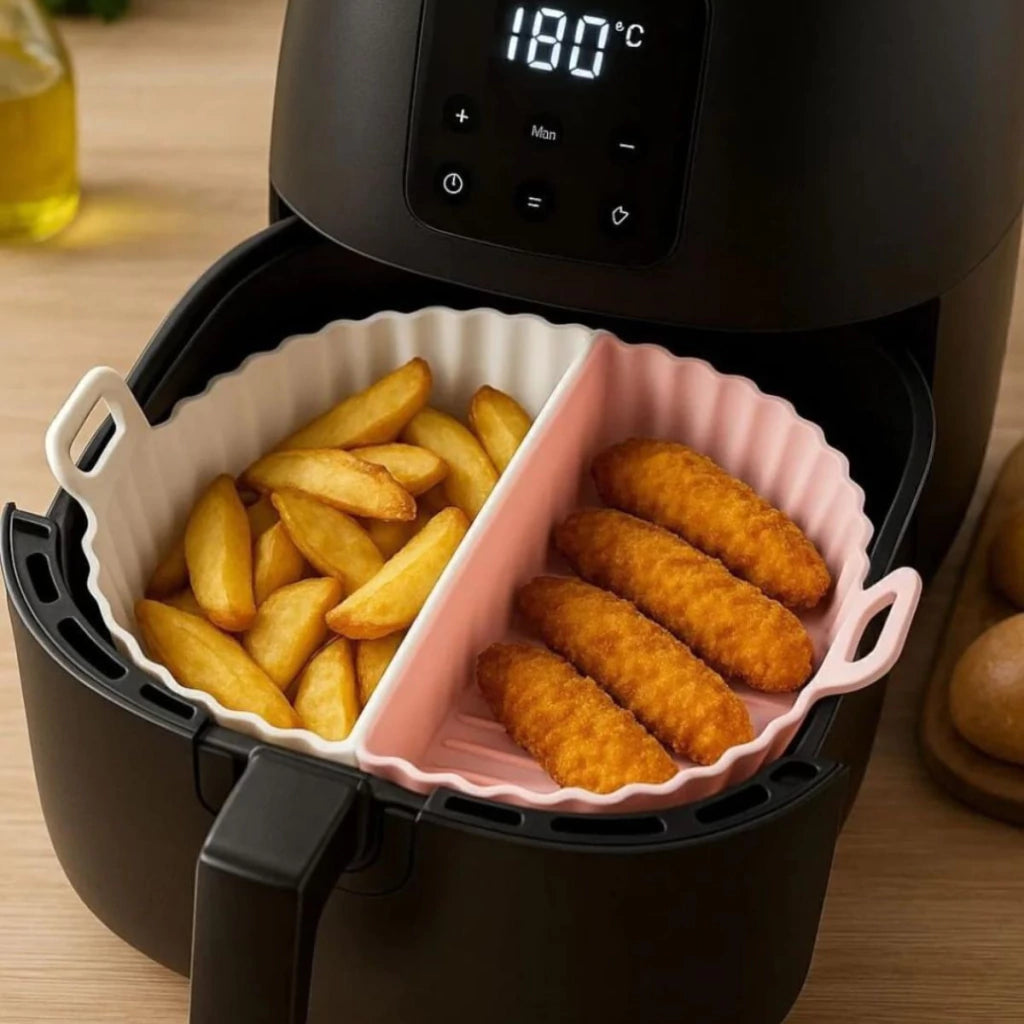 Molde de silicona diseñado para freidoras de aire con un diámetro de 20 cm y base de 16 cm, ideal para cocinar de manera rápida y saludable. Su material flexible facilita el desmoldeo y limpieza, mientras que su tamaño compacto maximiza el espacio dentro de tu freidora. Perfecto para preparar postres, bizcochos o platos salados sin complicaciones. Atrévete a cocinar diferente y saca el máximo provecho a tus recetas con este molde resistente y práctico.