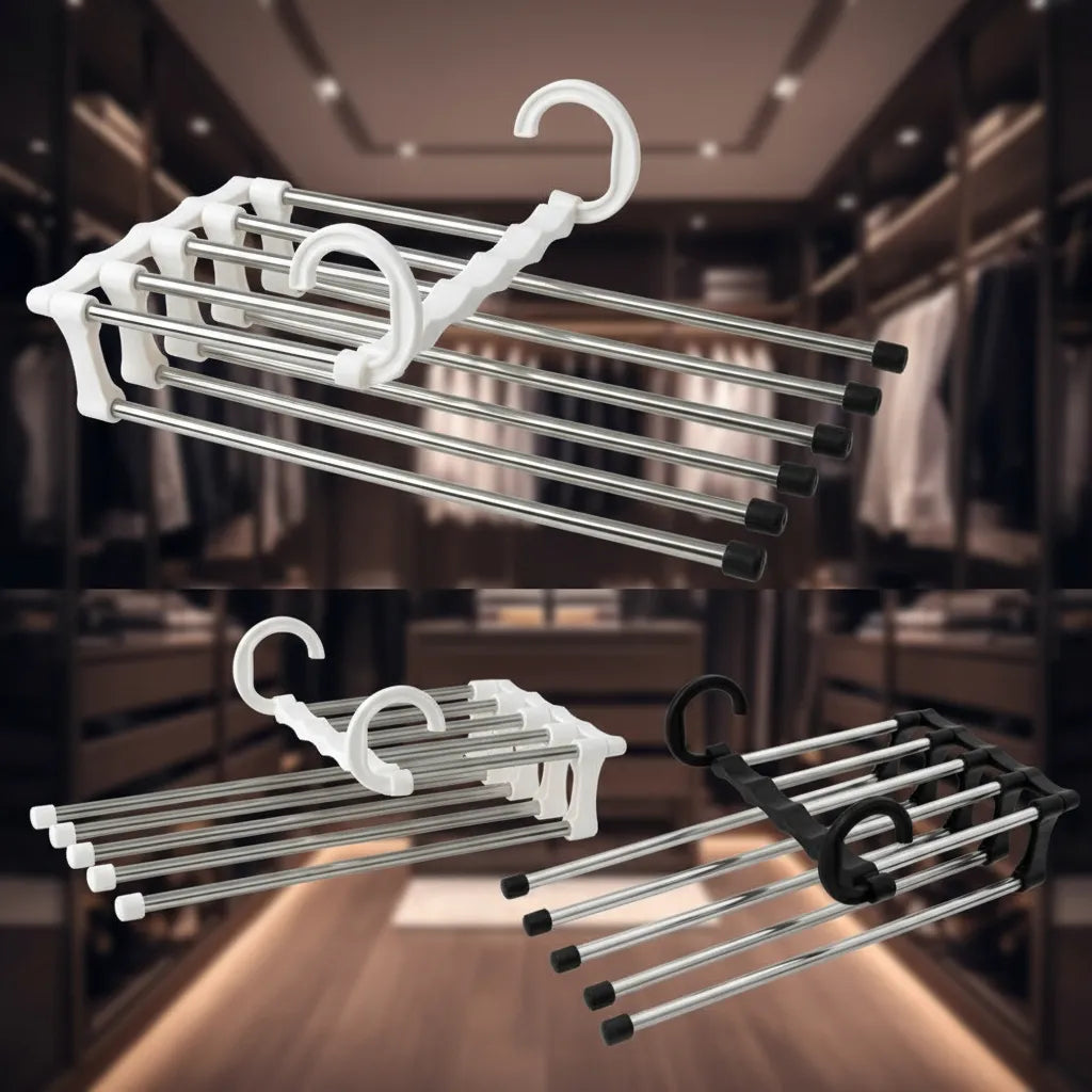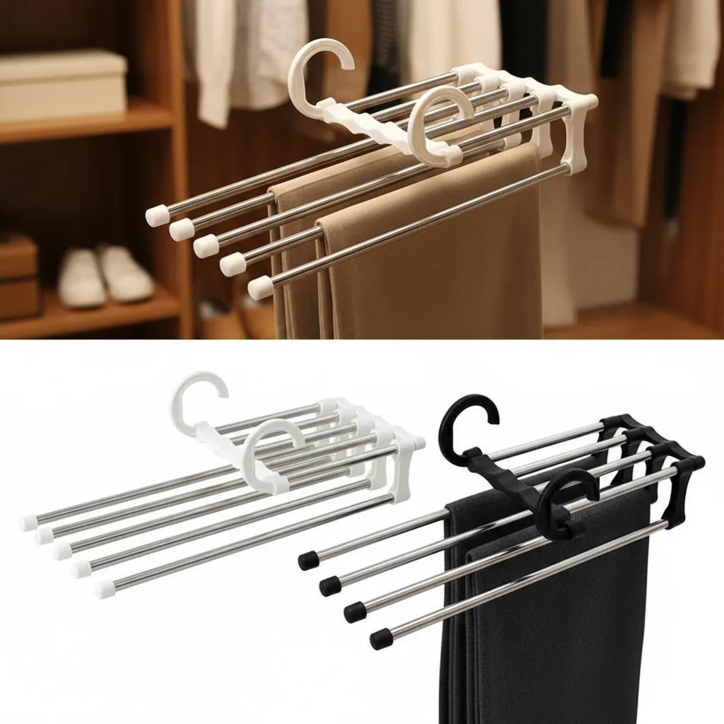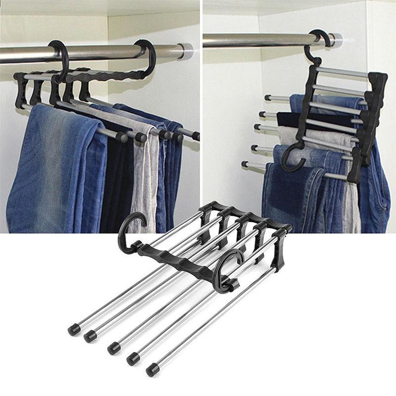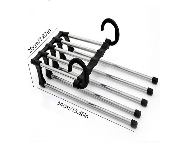 Perchero multifuncional cinco en uno para pantalones, perchero mágico para pantalones, perchero para secar pantalones de acero inoxidable, perchero para ropa Material del producto: Plástico ABS + tubo de acero inoxidable