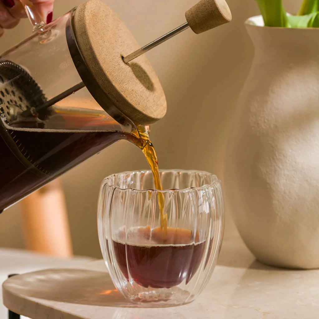 Este vaso doble vidrio rayado de 250 ml desafía lo común con su diseño audaz y moderno. Su doble capa mantiene la temperatura de tus bebidas por más tiempo, mientras que su textura rayada aporta un toque único y lleno de personalidad. Perfecto para quienes no temen destacar en cada sorbo.